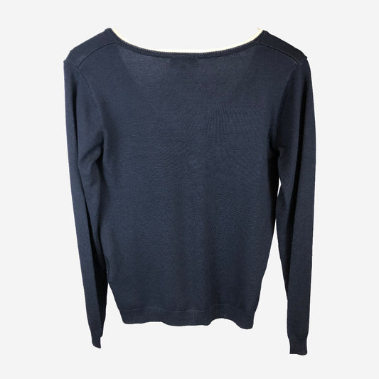 Save £48.00LONG SLEEVED V NECKED NAVY EMBELLISHED JUMPER