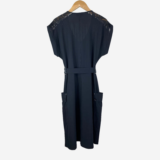 SHORT BLACK TECHNICAL FABRIC DRESS WITH LACE INSET AT THE SHOULDER