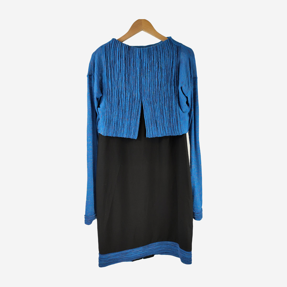 Striking Twin Set from Oblique combining a sleeveless black 'cocktail style' dress with a contrasting ribbed wool overtop to create a highly wearable outfit suited to day or evening wear. The top can be worn with jeans for an easy on trend look.