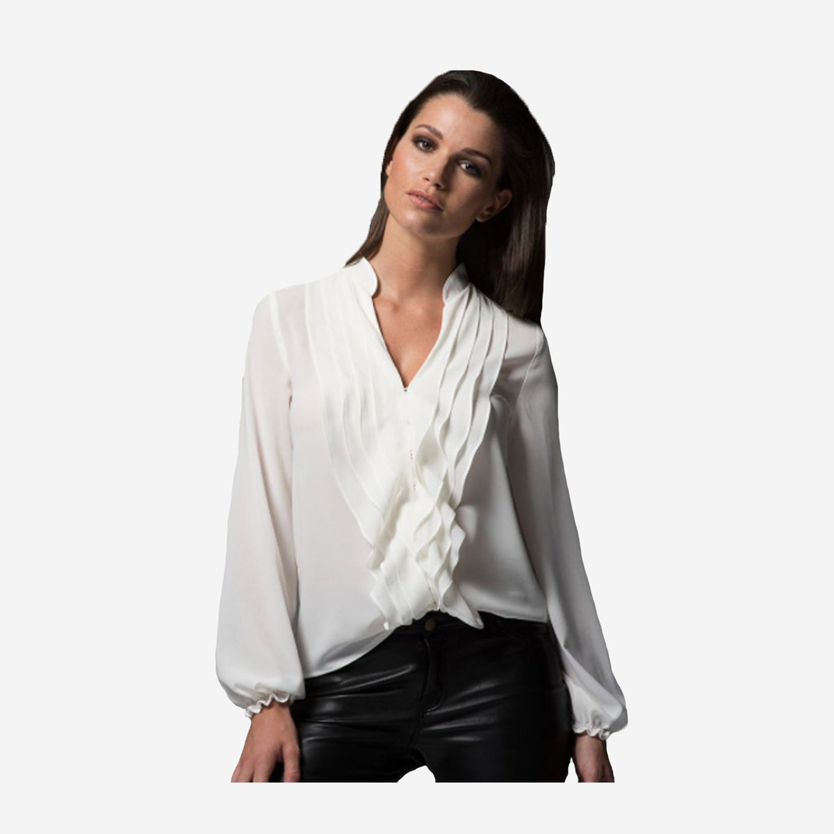 Take a modern twist on Victoriana with our aptly named Victoria shirt. This luxurious blouse will up your style game in a flash with an elegant cascade of tiered ruffles and frill finished blouson-elasticated cuffs. Cut in classic Ivory georgette this beauty is not see through and features elasticated loop and mother of pearl buttons that fasten fuss-free.
