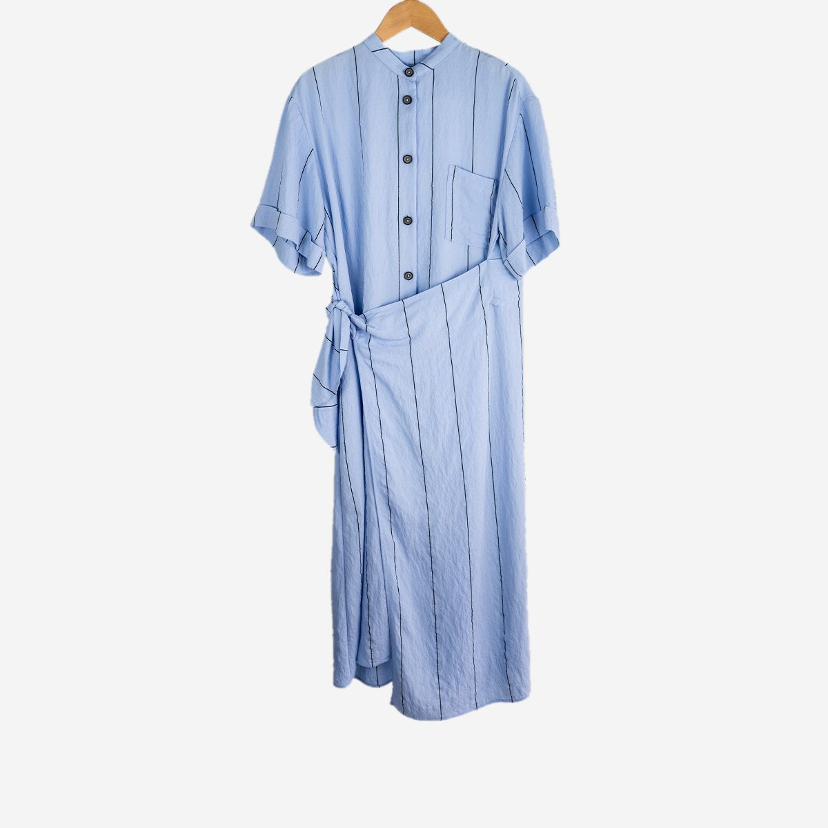 Fabulous short sleeved shirt dress by Crea concept, flattering design with buttons down the from and a wrap style tie to the side, with a side pocket too. Add a heel for a great work look or a strappy sandal for a wedding or event.