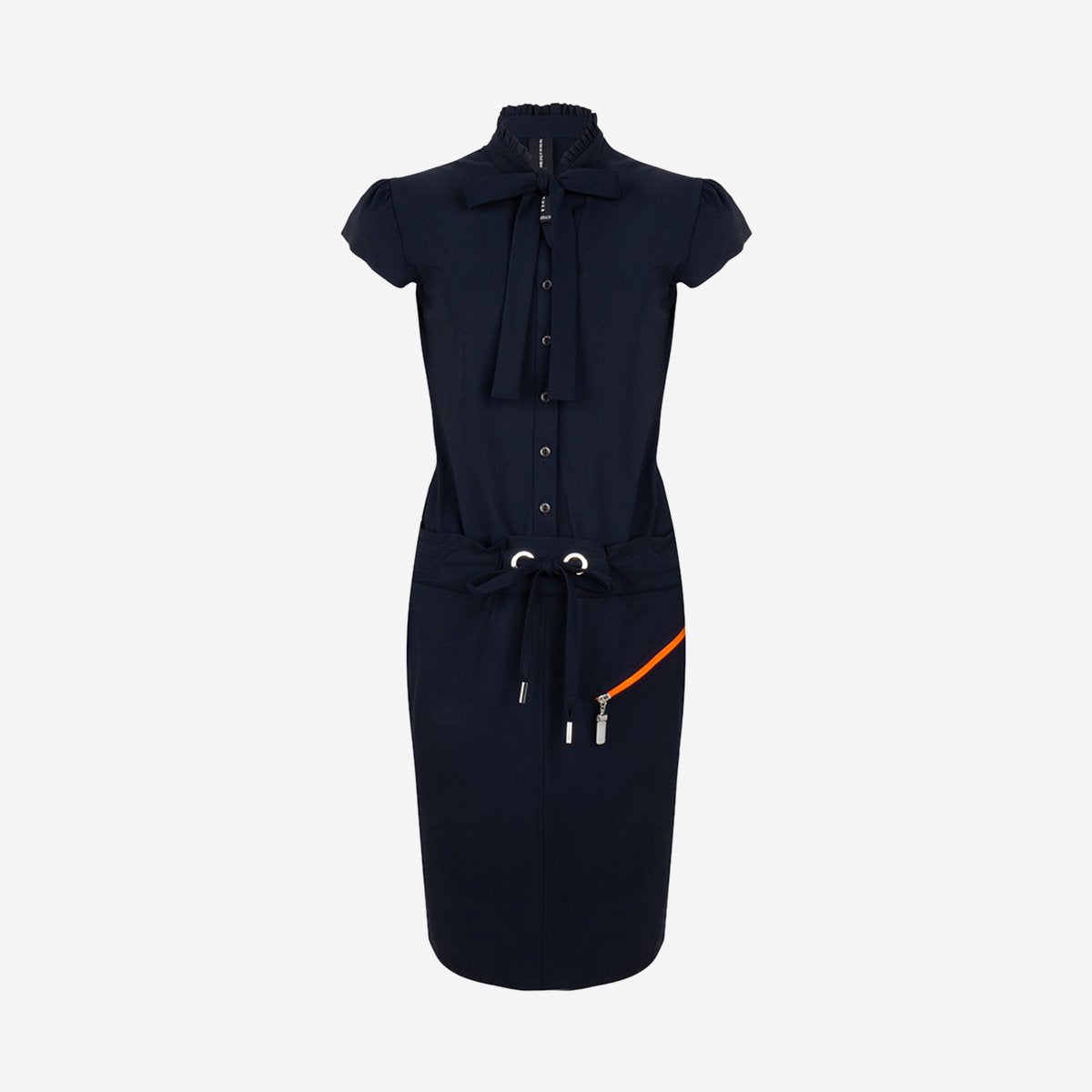 Jane Lushka combines a mix of different styles in the Xena Dress. Just to name a few, the dress features a stylish stand-up collar, zipper detailing, a self-tie pussybow and a bold drawstring waistband with oversized eyelets. All wrapped into one must have dress.